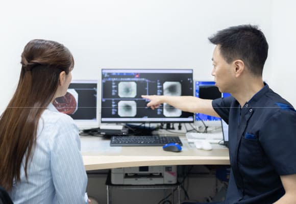 - 撮影した内視鏡画像をお見せしながら、医師が丁寧に結果をご説明いたします。
